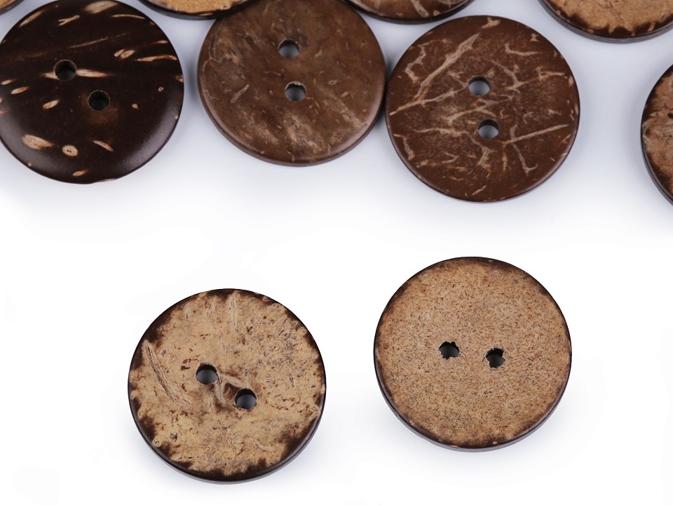Přírodní knoflík ze skořápky kokosového ořechu. Průměr knoflíčku 17mm. 2 dírky na přišití.