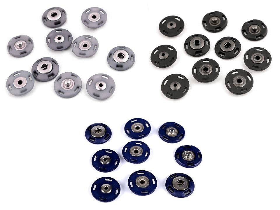 Designové plastové patentky snadno našijete díky dírkám na jejich okraji. Využijete je jako zapínání na tašky, bundy, kabáty nebo mikiny.