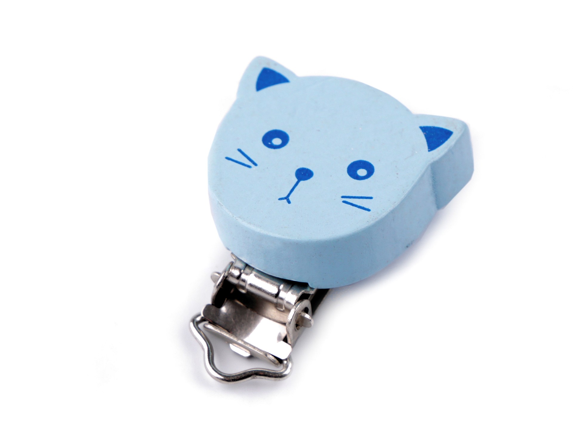 Klip na dudlík dřevěný - modrá kočkaSkladem 1 ks26 Kč/ ks21,49 Kč bez DPH