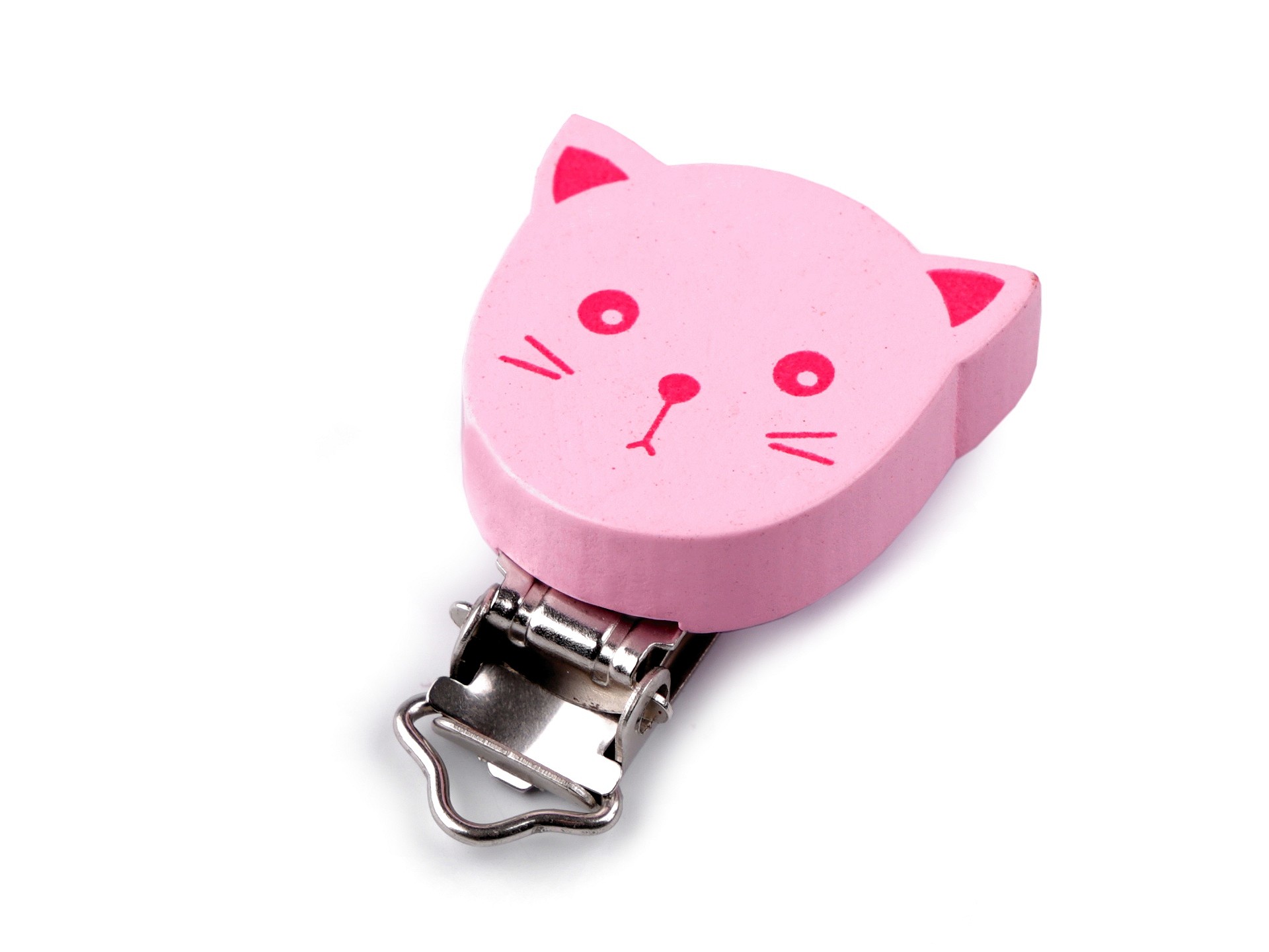 Klip na dudlík dřevěný - růžová kočkaSkladem 2 ks26 Kč/ ks21,49 Kč bez DPH
