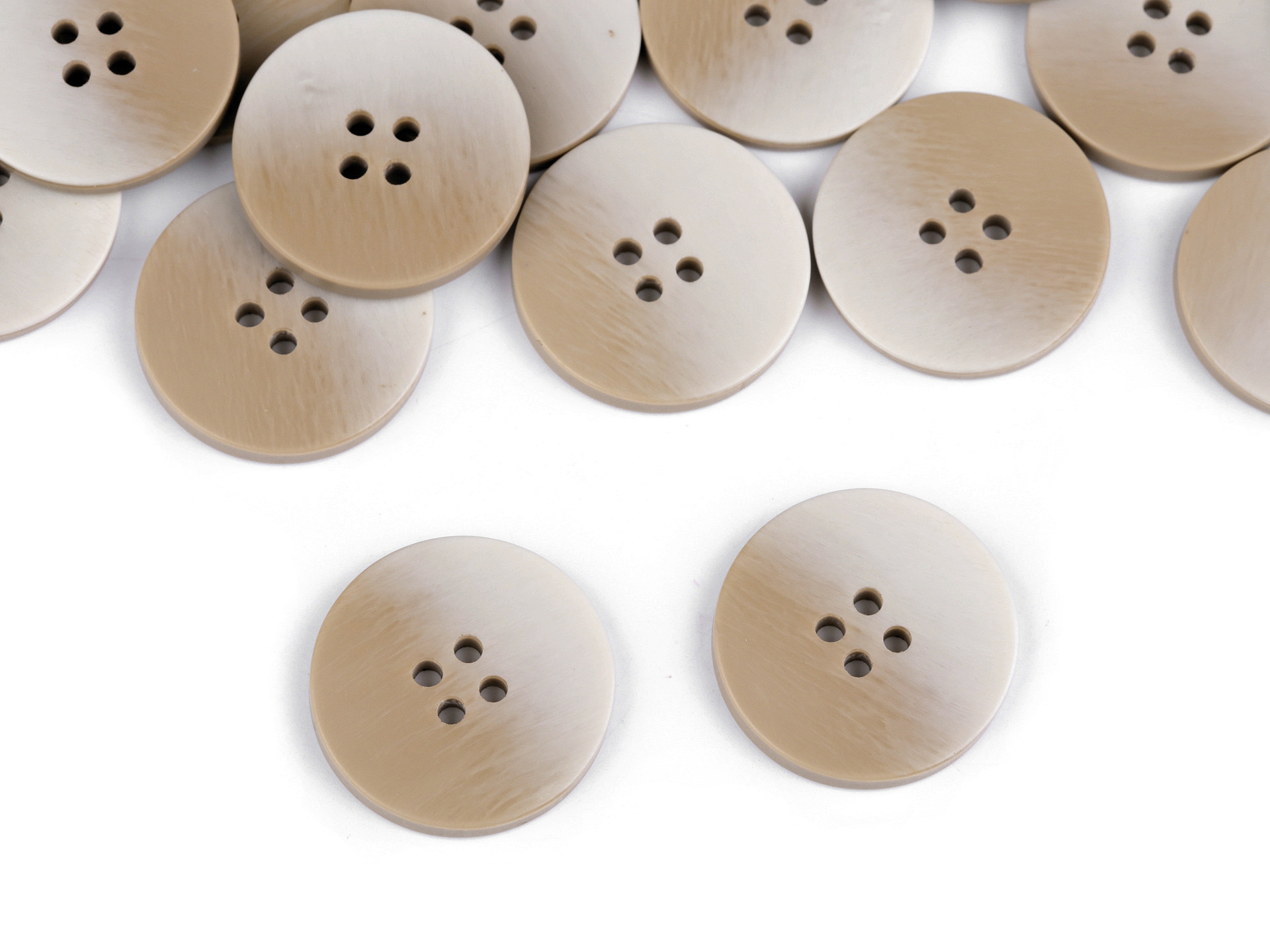 Čtyřdírkové knoflíky mají poutavý design díky jemnému barevnému ombré přechodu. Vyniknou nejen na kabátech, ale i na svetrech, vestách apod.