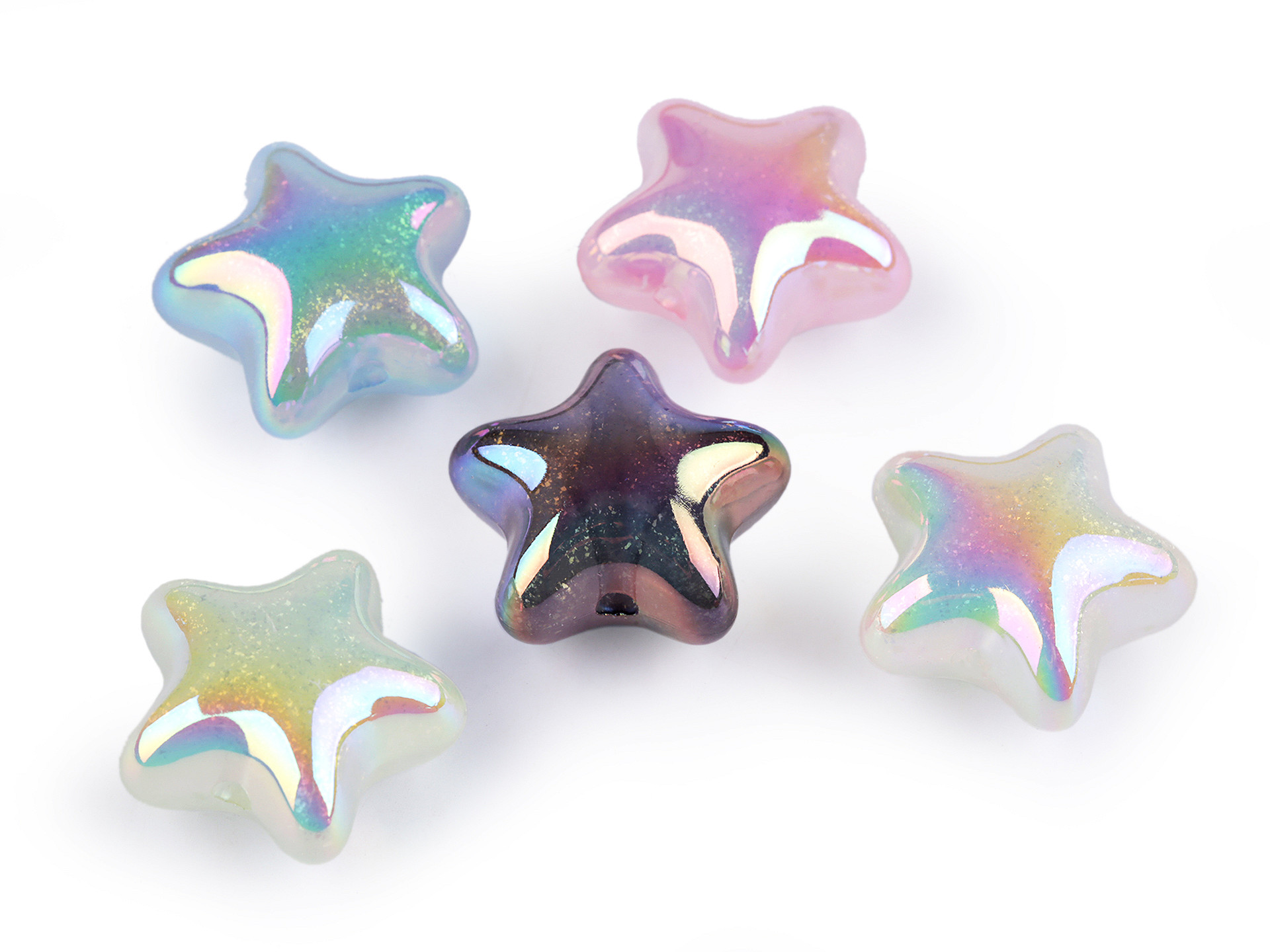 - Plastové korálky s AB efektem hvězda 23 mm - mix, 5 ks