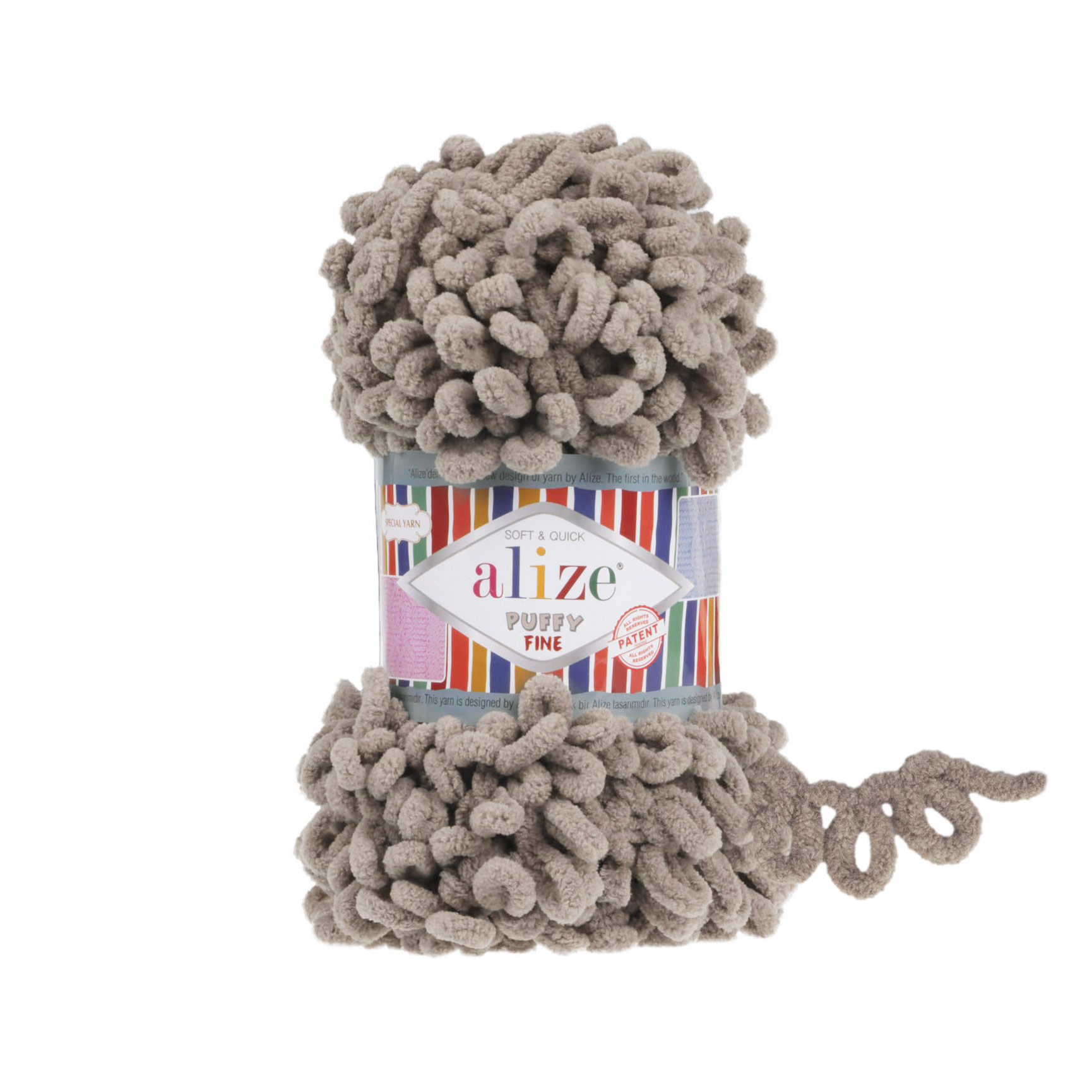 Úžasně jemná chlupatá příze s předpřipravenými oky, na kterou nebudete potřebovat jehlice ani háček. Je vhodná zejména na výrobu dětských dek a přikrývek, ale také svetrů, šál či sukní, které vytvoříte snadno a rychle jen svými prsty. Oproti přízi Puffy je Puffy Fine slabší a s menšími oky.