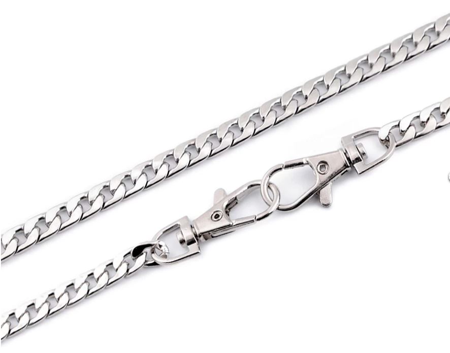 Plochý řetízek využijete na tašky a kabelky. Na obou jeho koncích najdete připevněné karabinky.