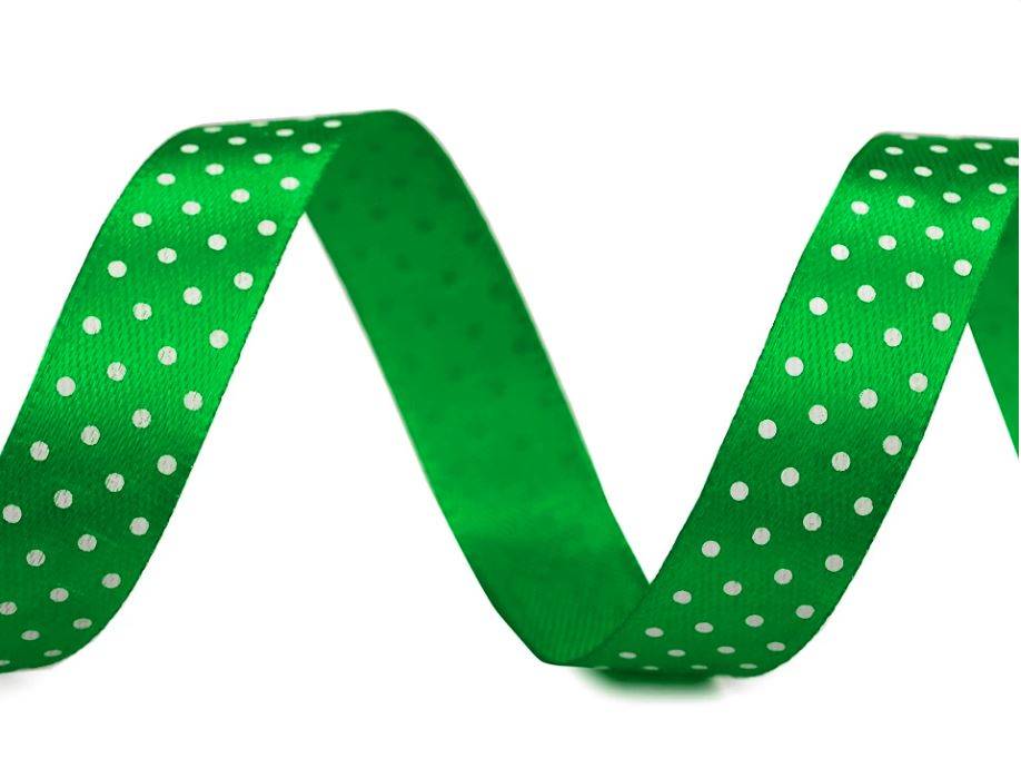 - Saténová stuha s puntíky šíře 15 mm, návin 22,5m různé barvy