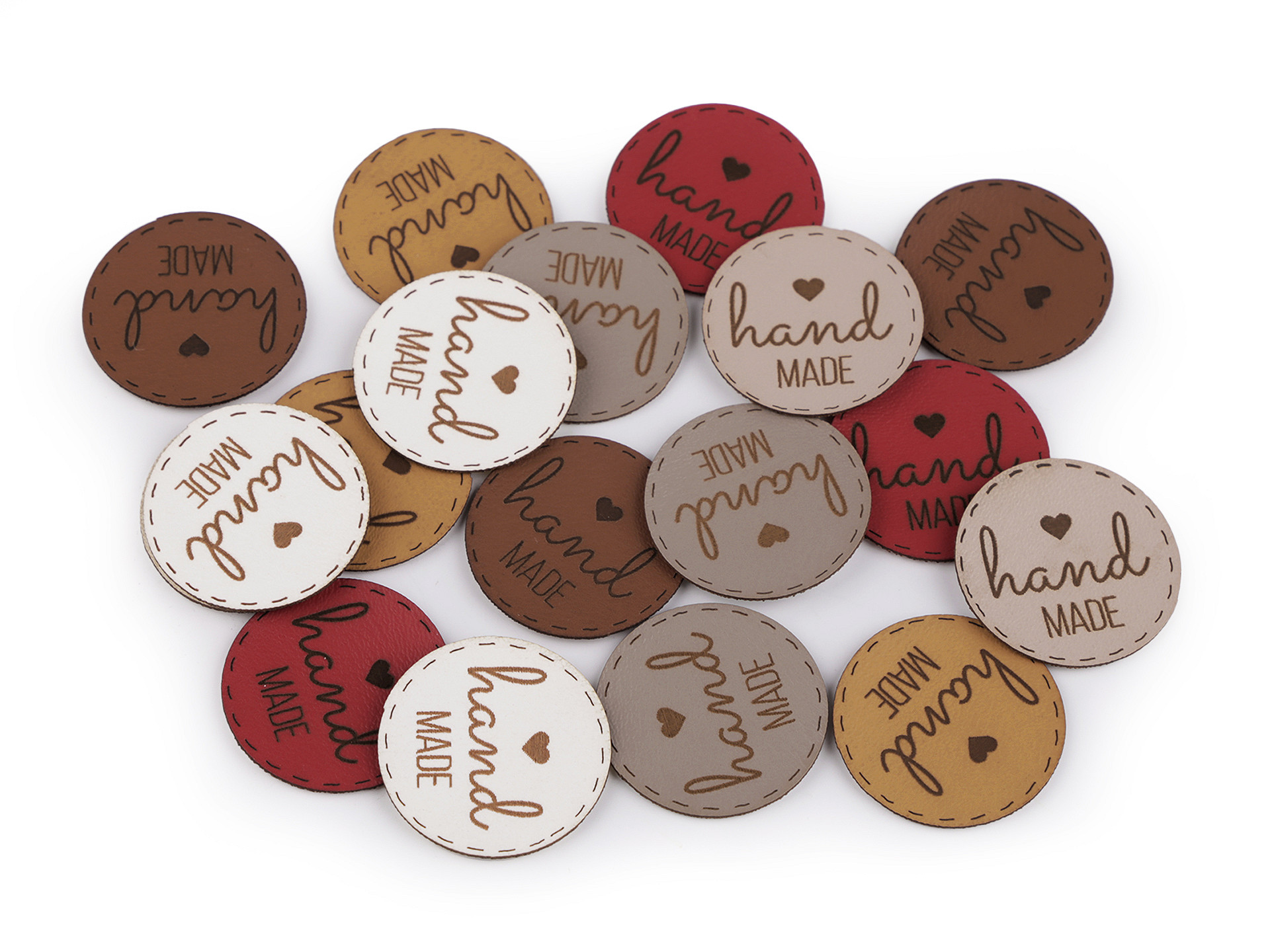 - Štítek, nášivka- Hand made - z eko kůže - 30 mm